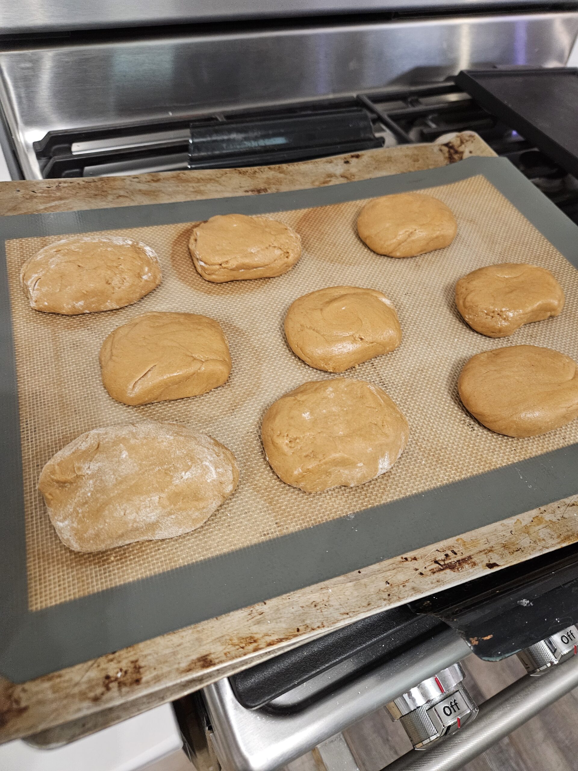7. Bake on a greased cookie sheet at 450°F for 8 minutes, or until lightly browned.